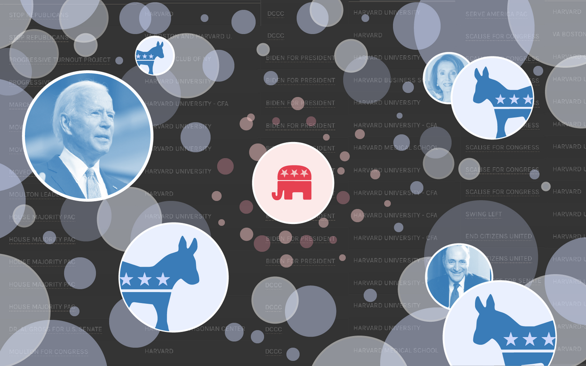 The 2020 United States Presidential Election has (finally) come to a close. We at the Harvard Open Data Project were interested in analyzing political action on campus, particularly among staff and faculty: Did Harvard monetarily favor Biden or Trump, and who was favored for the Democratic nomination? At what school were faculty most politically active? Our dataset, which was made publically available by the Federal Election Commission, includes the number of donations, the amount of donations, and the date of donations for each Presidential candidate from Harvard faculty, from January 1, 2019, to October 14, 2020, the most recent requirement for report filing.