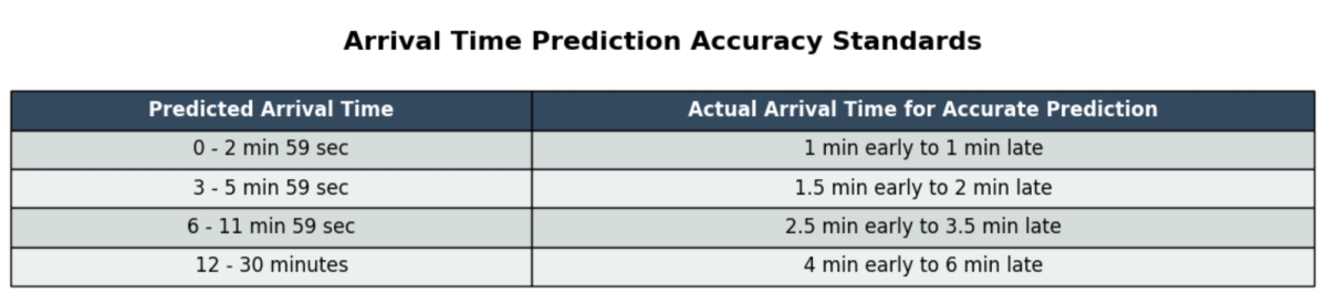 Figure 3: The arrival time interval required for a prediction to be considered "accurate."